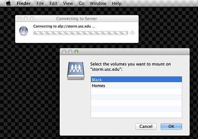 4. The next step will ask you for a volume to mount. This is the cool part where you will access yor portion of the Storm server as another hard drive in your computer. Choose the volume with your username in it.